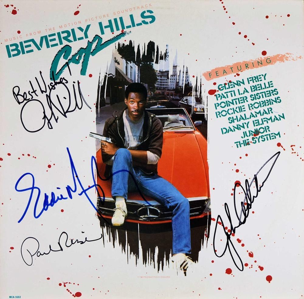 Beverly Hills Cop 1984 soundtrack album. Signed: Eddie Murphy, John Aston, Best Wishes! Judge Reinhold & Paul Reiser.