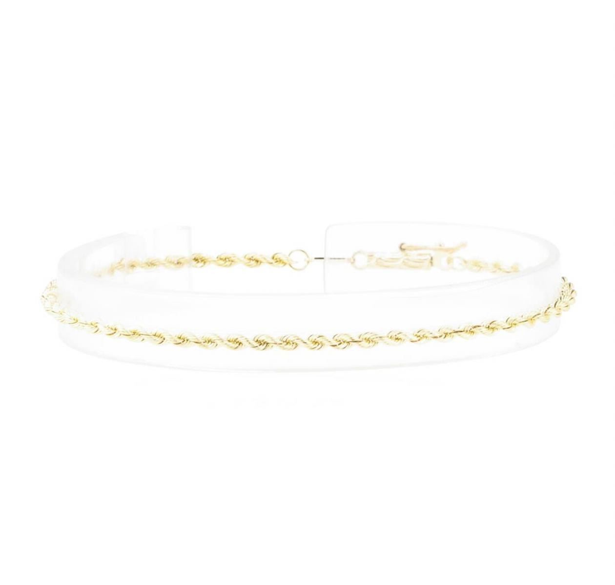 One Beverly Hills Gold rope bracelet measuring approximately seven inches in length and 2.2mm in width featuring: 14KT yellow gold weighing 2.5 grams.