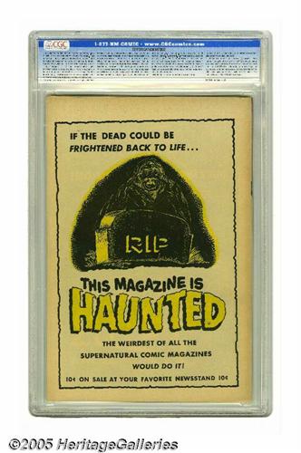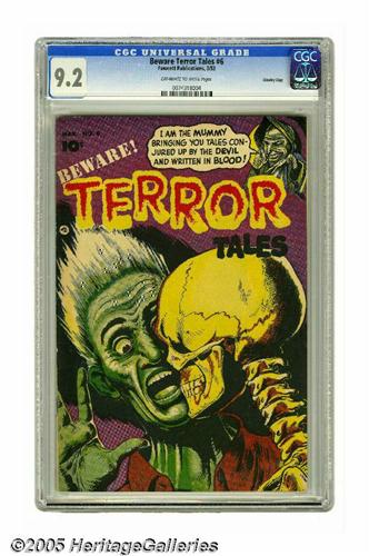 <B>Beware Terror Tales #6 Crowley Copy pedigree (Fawcett, 1953) CGC NM- 9.2 Off-white to white pages.</B></I> This pre-Code horror comic, complete with skull cover, comes from the files of Fawcett editor Wendell Crowley. Overstreet 2005 NM- 9.2 value = $280. CGC census 6/05: 1 in 9.2, 1 higher.