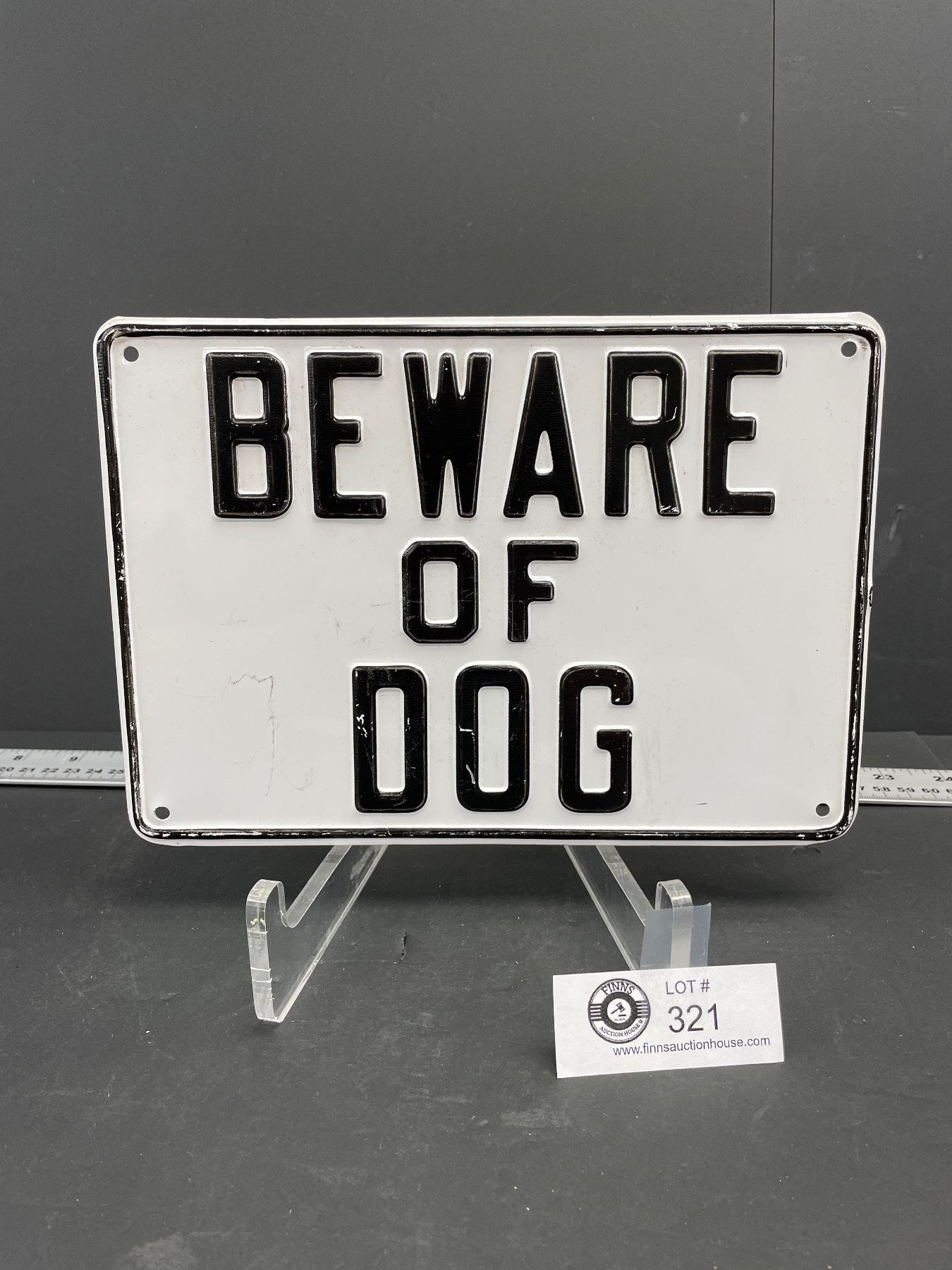 Beware of Dog Embossed Tin Sign. 10" w x 7" T
