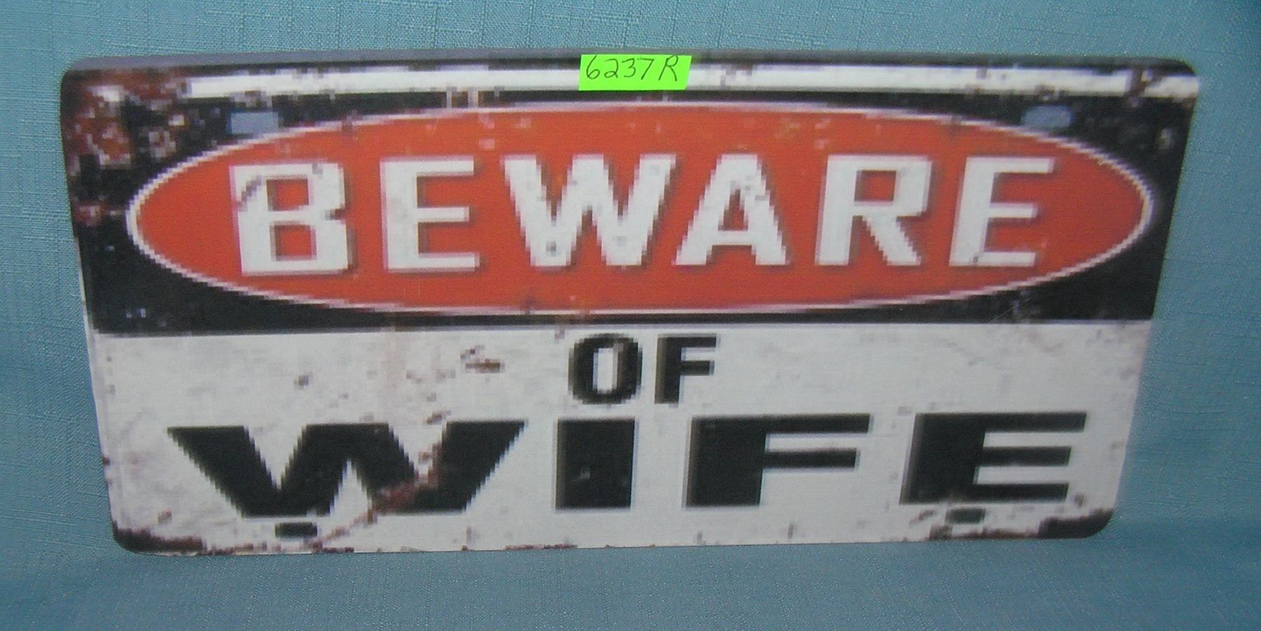Beware of wife License plate size retro stylesign est. value $25.00-$30.00