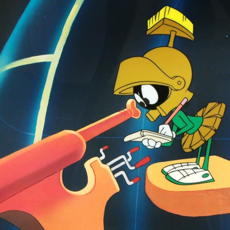This meticulously crafted sericel features Marvin the Martian, one of a host of memorable cartoon characters created by Chuck Jones (1912-2002)! "Beware the Eyes of Mars" is a sold out limited edition animation sericel that includes Certificate of Authenticity attached in verso! Measures approx. 14" x 11".