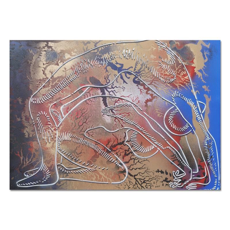 "Beyond Borders" is an original mixed media painting on paper by Mark Kostabi. The piece is hand signed and accompanied by a Certificate of Authenticity. Measures approximately 29.5 x 42".