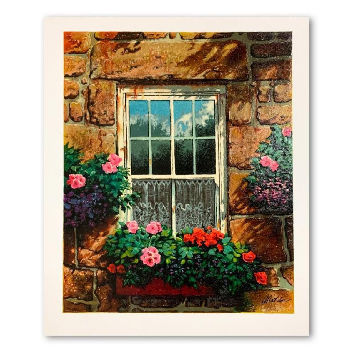 "Beyond Our Window" is a limited edition serigraph on paper by Anatoly Metlan. It is numbered and hand signed and includes a letter of authenticity. Measures approximately 16" x 12" (image).