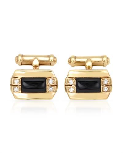 Bezel-set Black Agate Cuff Links with Diamond in 18K Yellow Gold | 294878 Grams, featuring 2.48 White Diamond Round ct 2 0.21 ct 8 ct 18 ct