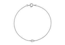 A round diamond is delicately in a rich 14K white gold bezel-setting. This diamond solitaire bracelet has a total weight (TDW) of 0.15 carat.