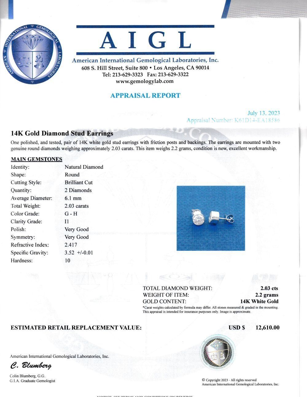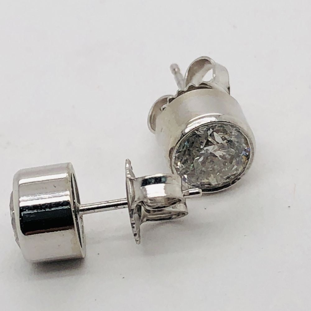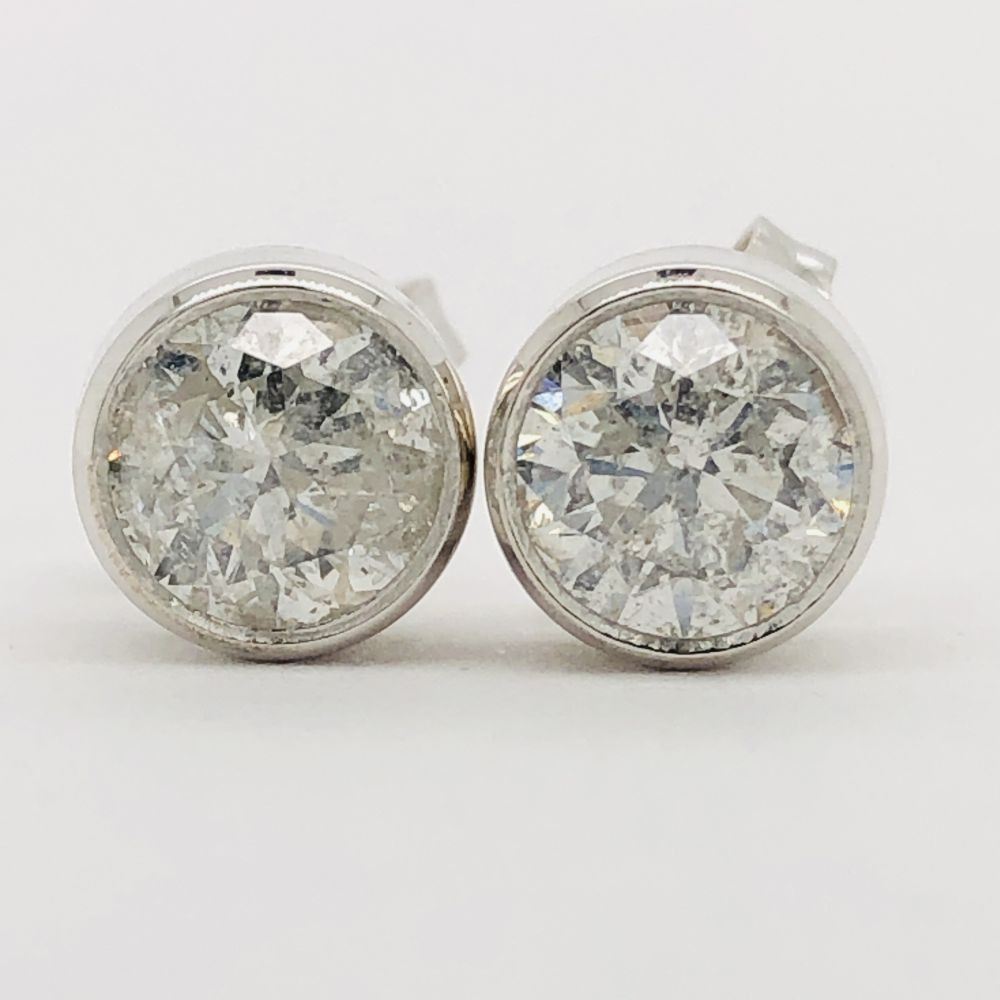 ADDITIONAL INFORMATION:& nbsp; This is a bold look for solitaire stud earrings! These round, brilliant-cut diamonds are bezel set in karat white gold stud earrings. The earrings each measure approximately 7.2 mm x 5 mm deep and attach to the earlobe with posts and firm friction backs.& nbsp; Can be worn by women or men.