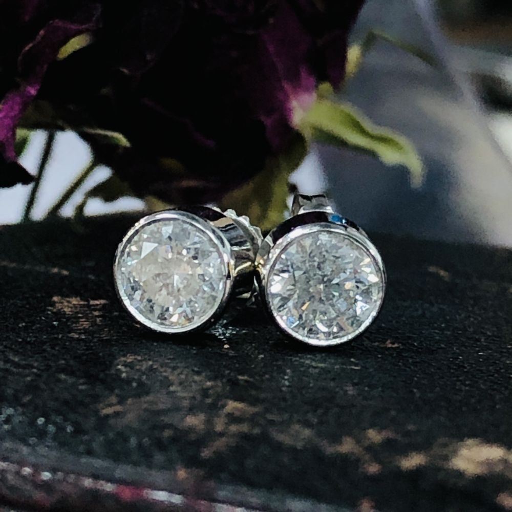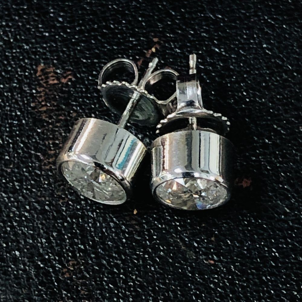 TITLE DESCRIPTION: Bezel-Set Diamond Solitaire Stud Earrings