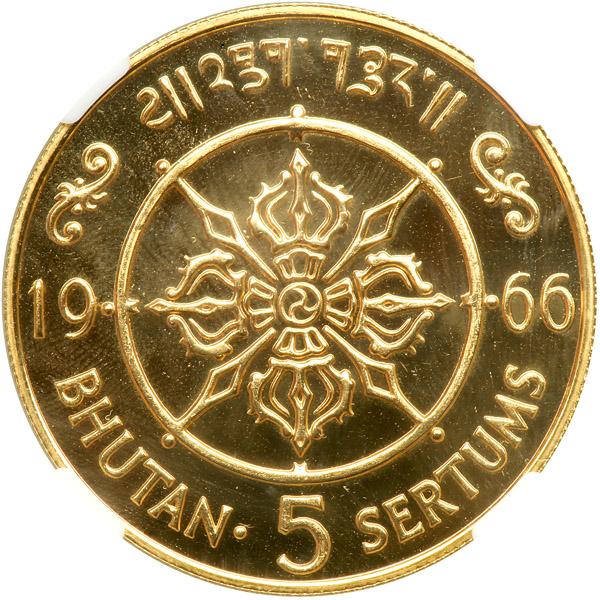 Bhutan. 5 Sertums, 1966. NGC PF63