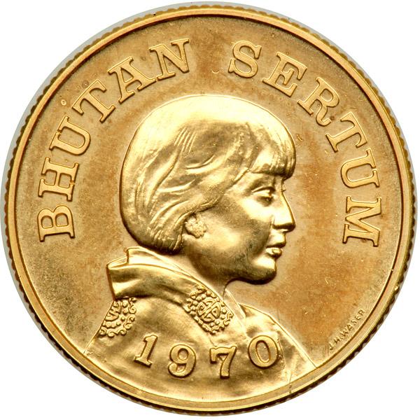 Bhutan. Sertum, 1970. Fr-7; KM-36. Weight 0.2353 ounce. Mintage 3,111. Princess right. Brilliant Uncirculated.