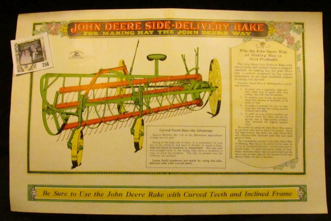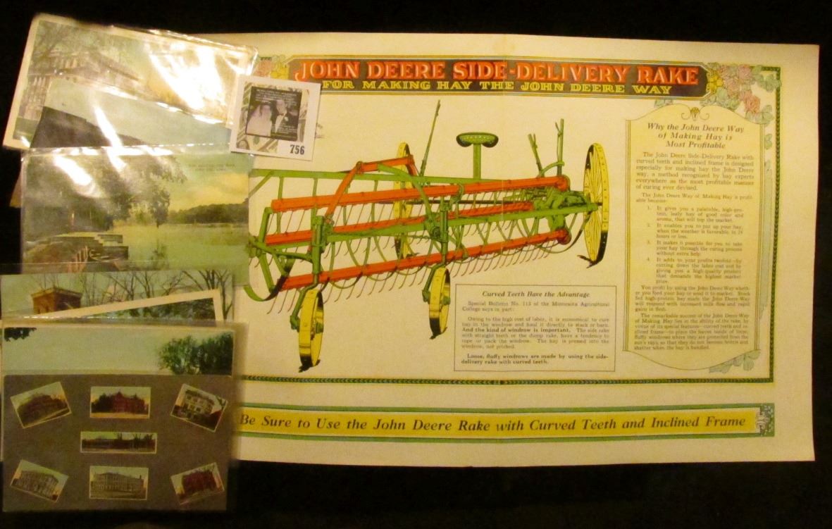 Bi-Fold Poster "John Deere Side-Delivery Rake For Making Hay the John Deere Way"; & (10) Different Iowa City, Iowa Post Cards.