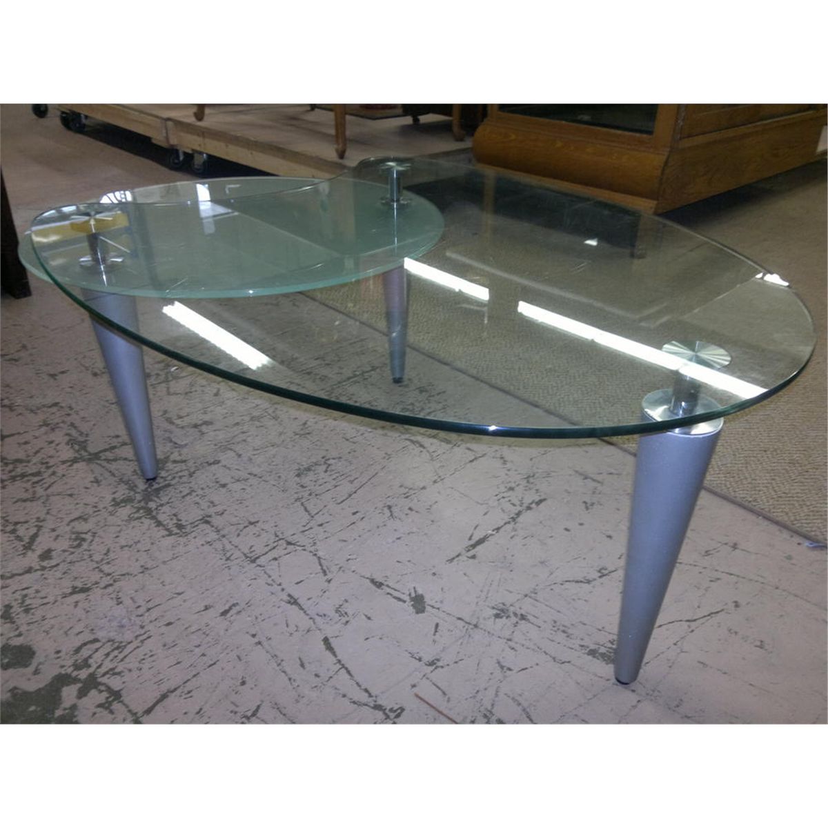 Bi-Level Contemporary Glass Coffee Table L 51in W 31in h 18in