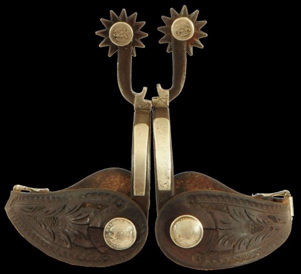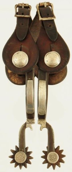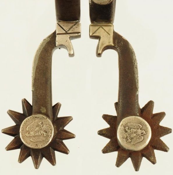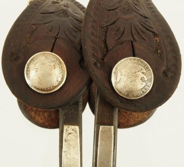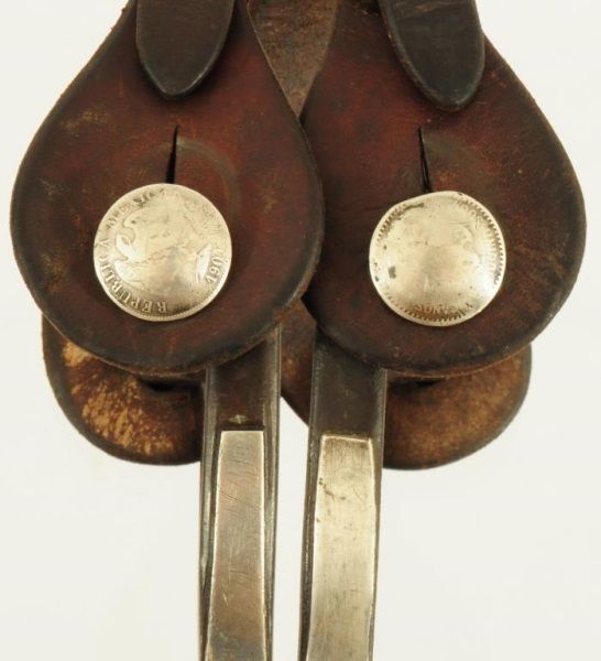 Victoria, TX, Silver overlay, with Mexican coin buttons and coins on shanks by rowls.
