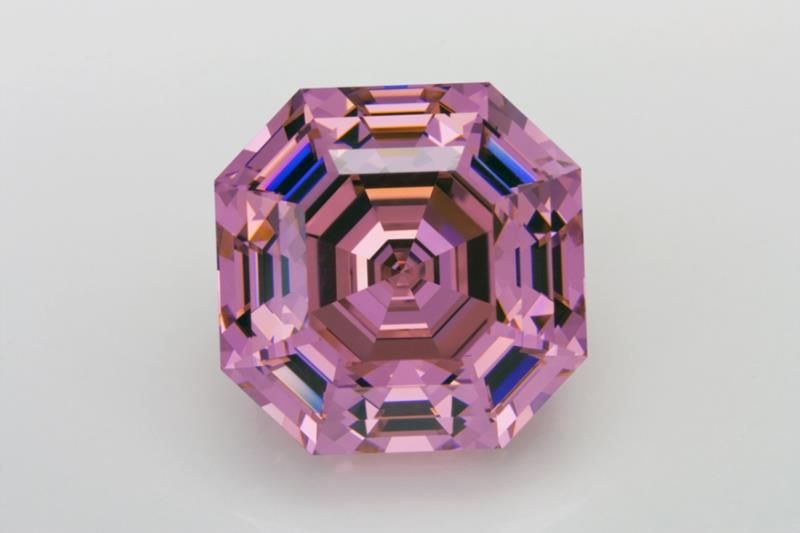 Bianco 2 Carat Pink Asscher Cut Diamond. bianco-diamonds? is the mark for high quality crystallographic isometric CVD, HPHT stones, not to be confused with Moissanite or synthetic Moissanite, a, extremely rare mineral, discovered in meteorites by Henri Moissan in 1893 then later in diamond inclusions on the Mohs scale of 10 is 9.5. While Moissanite is much stronger than a sapphire or ruby, the anomalous isotopic ratios prove the stones origin to be outside the solar system. The stone's intense colors are graded on the diamond color grading scale in the I-J-K range. bianco?-created diamond differ in that they are Russian, hand cut, non-geological formed substances with a specific gravity between 5.6 and 6.0 ?1.6 times that of an uncut diamond. Its refractive index is high, at 2.15?2.18, its dispersion is 0.058?0.066 which supersedes its competing non-lab-created diamond at 0.044. bianco? is the name given to the flawless stones bianco?-created markets, each uniquely hand-cut to the highest standards for brilliance with the same passion as the worlds largest and rarest museum quality geological stones. bianco? was introduced thirty years ago to the affluent readership of the Robb Report and other lifestyle magazines. Today, bianco?creations are worn by some of the wealthiest and most famous celebrities in the world. As one might imagine, availability is limited. Bianco-created diamonds are meant for those who appreciate and can afford the finest but are also intelligent buyers.