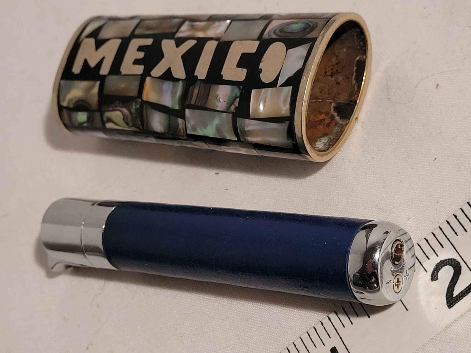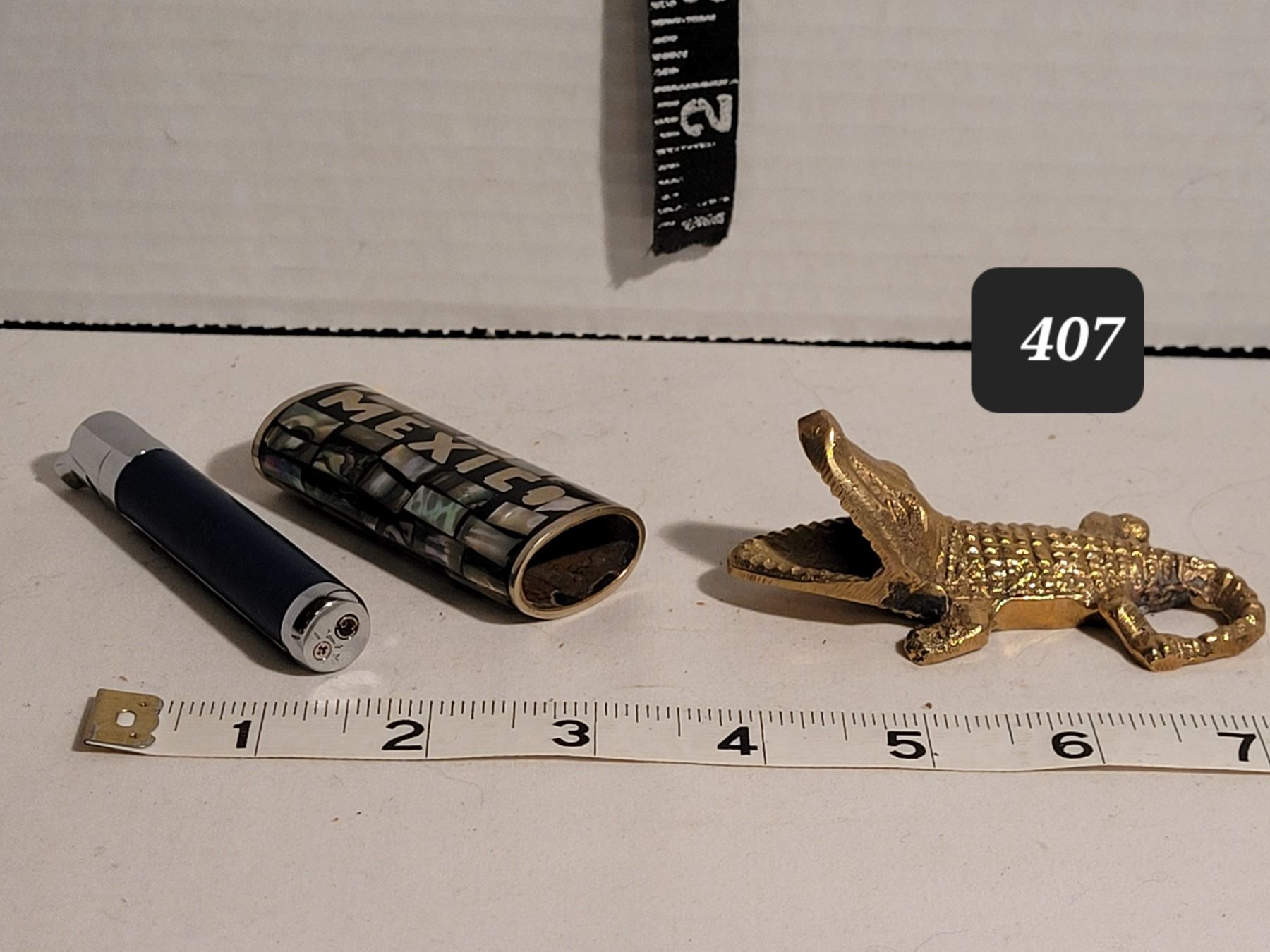Bic lighter case, butane lighter & unique brass alligator ashtray.