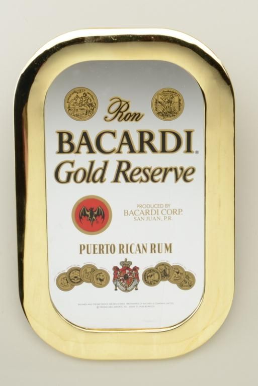 Bicardi Gold bar mirror in overall good condition, approx. 21” x 13”; a great display for the home barroom. Est.: $25-$50.