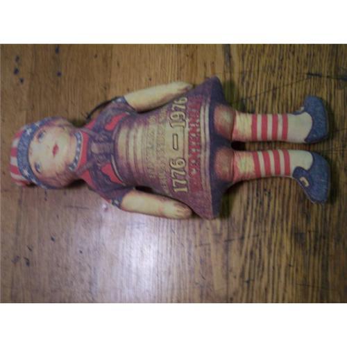 This is a wonderful Americana cloth doll.I had two of these and I took one to the shop and it sold the same day.This is all made of cloth.The string that you hang it with has broken,but is still there.The rest is in very nice condition.These are adorable hanging on a country cupboard or wall.Measures 15" long.