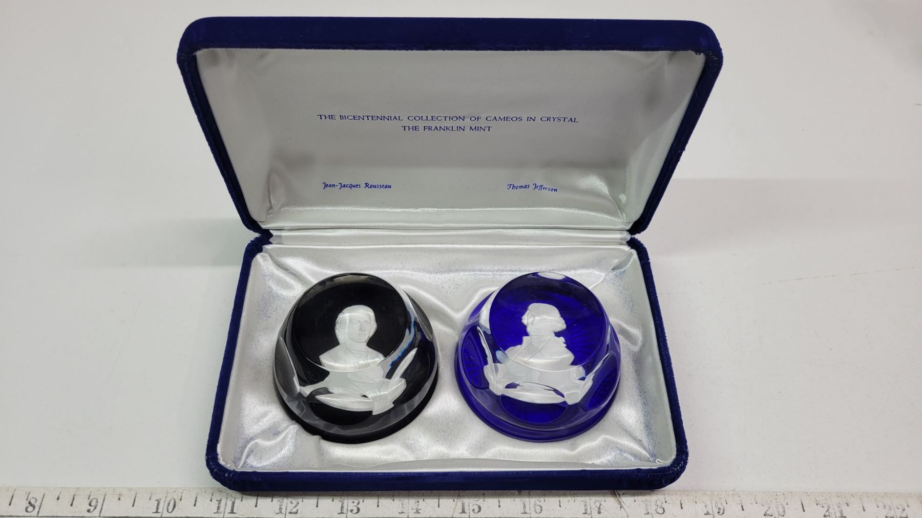 Bicentennial Collection of Cameo's in Crystal - The Franklin Mint; Rousseau and Jefferson