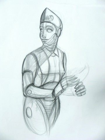 Steve Johnson's legendary special effects studio XFX, Inc was used to create the amazing androids in the highly ambitious 1999 sci-fi fantasy "Bicentennial Man". It followed the life of android Andrew Martin (Robin Williams), who as he actually finds emotion, becomes more and more human. This is an original pencil design drawings done by legendary special effects designer Constantine Skeris of both Martin and of "Stewardess". Extremely rare, and truly works of art suitable for framing. (Oversize original drawings are Approx. 17x14).