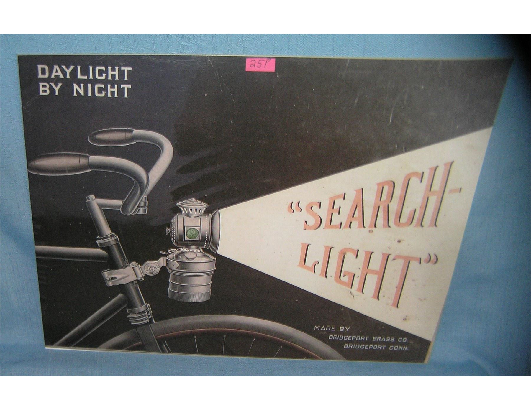 Bicycle search light retro advertising sign 12 inches by 16 inches est. value $40.00-$50.00