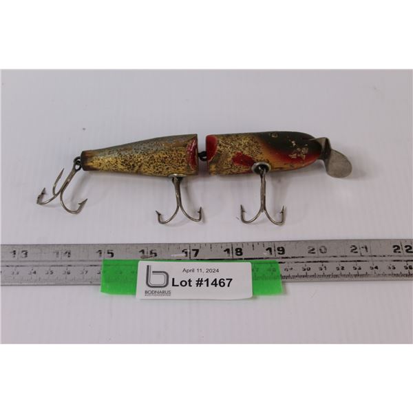 Vintage Wooden Jointed Glass Eyed Fish Hook - Plug
