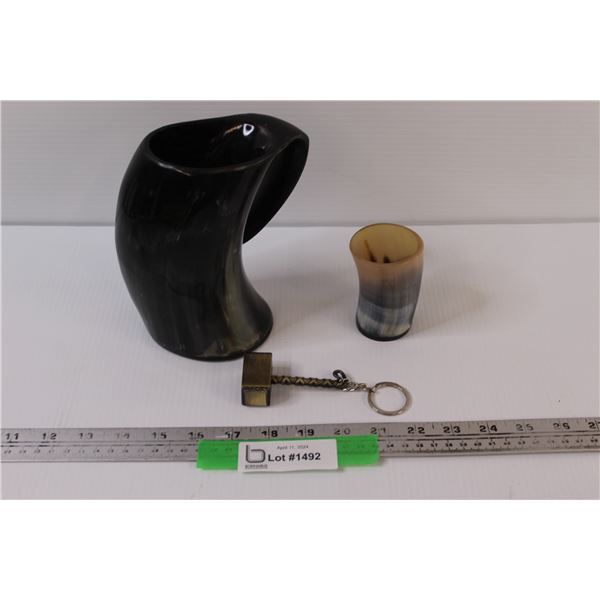 (2) Resin Cast Pitcher / Tankard & Glass, Thor Bottle Opener