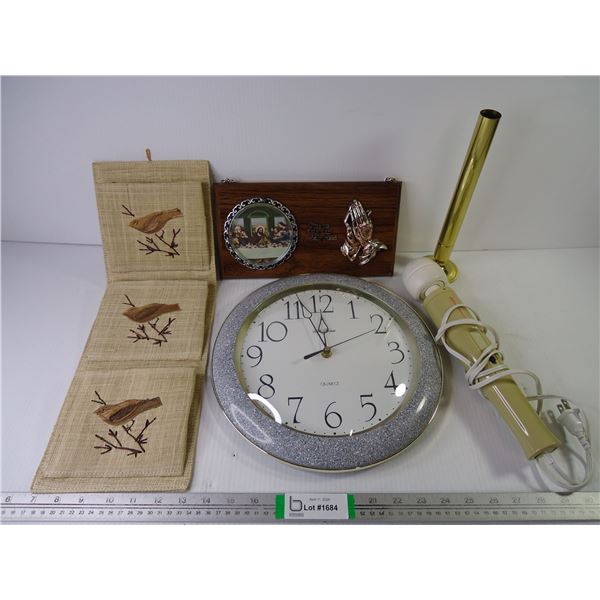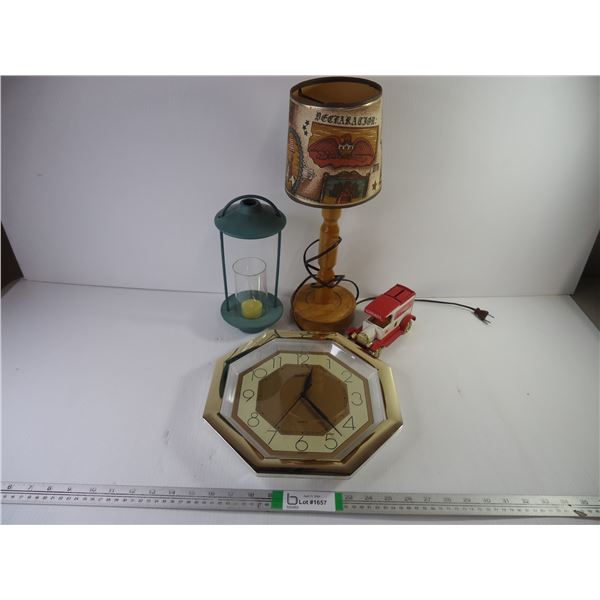 Lamp (working),Clock (needs battery),Votive, Canada Post Bank1657 - Lamp (working),Clock (needs battery),Votive, Canada Post Bank
