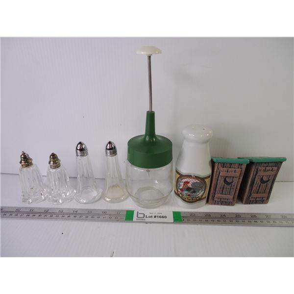 Androck Mason Food Chopper, Spice Jar and (3) Sets of Salt/Peppers1660 - Androck Mason Food Chopper, Spice Jar and (3) Sets of Salt/Peppers