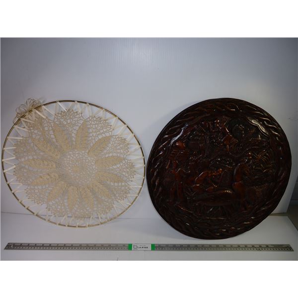 Wood Carving Wall Hanger and Round Lace Decorative Wall Hanger