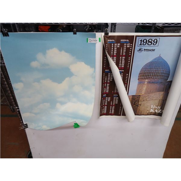 (2) Posters of Clouds,(2) 1989 Posters of Kazakhstan and a Roll on Vinyl Wood Cover1669 - (2) Posters of Clouds,(2) 1989 Posters of Kazakhstan and a Roll on Vinyl Wood Cover