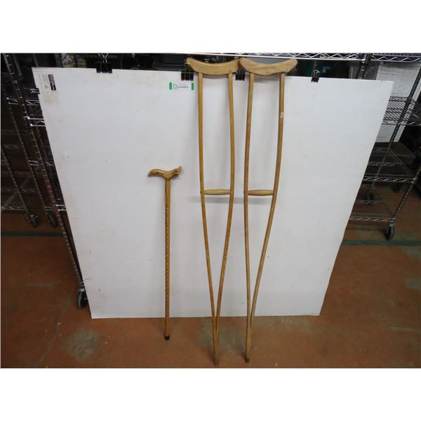 * Vintage Pair of Crutches-52" Tall and Cane-33" Tall1679 - * Vintage Pair of Crutches-52" Tall and Cane-33" Tall