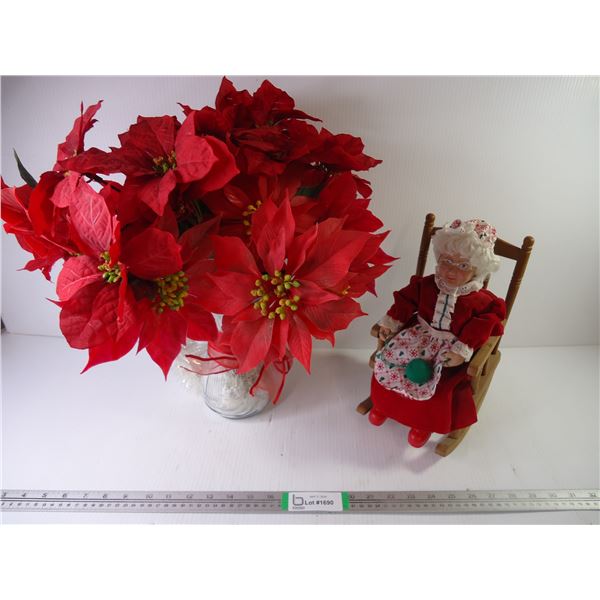 Mrs. Claus in Rocking Chair and Vase full of Artificial Poinsettias1690 - Mrs. Claus in Rocking Chair and Vase full of Artificial Poinsettias