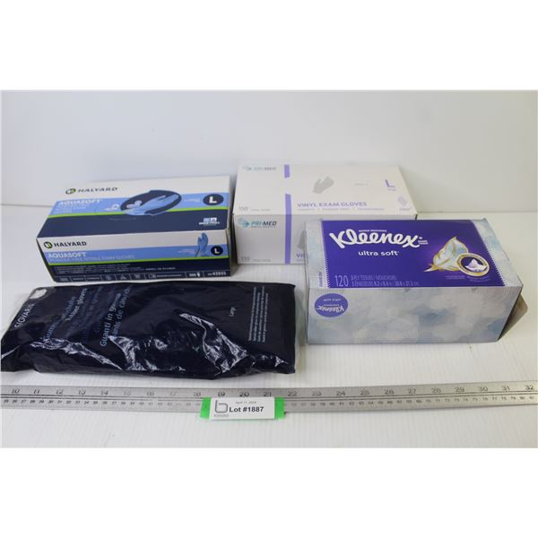 Rubber Gloves (NIB) - (2) Boxes of Vinyl Exam Gloves - Box of Kleenex