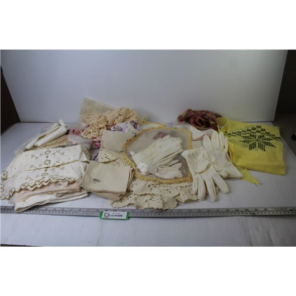 Cloth Place Mats (some staining) - Cloth Napkins - Apron - Doilies - Table Runner