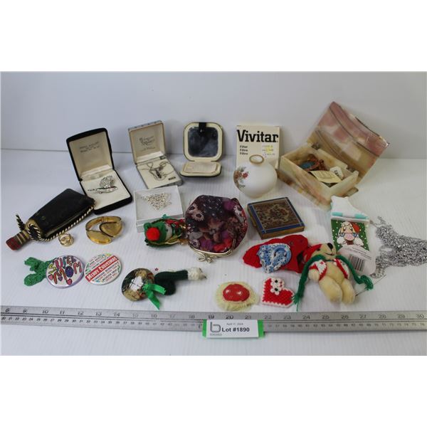 Costume Jewelry In Cases - Compact Cases - Vintage Wisk Broom in Leather Case - Stone Jewelry Box (broken hinge)