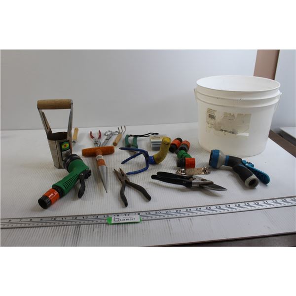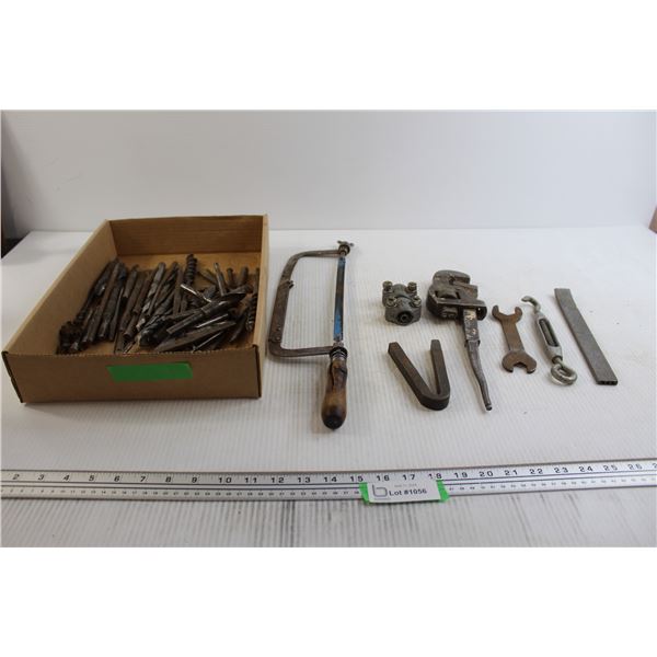 Pipe Wrench, Hacksaw, Flat of Assorted Bits