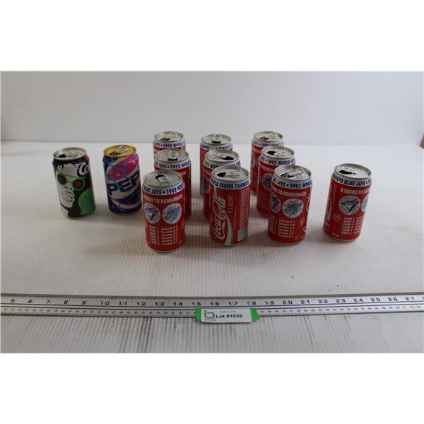 (12) Pop Cans with Designs - Coca-Cola, Pepsi