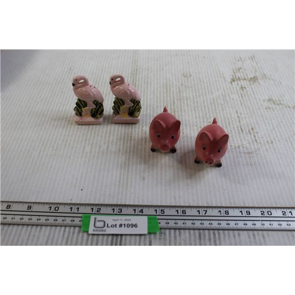 (2) Salt and Pepper Shaker Sets - Pigs, Flamingos