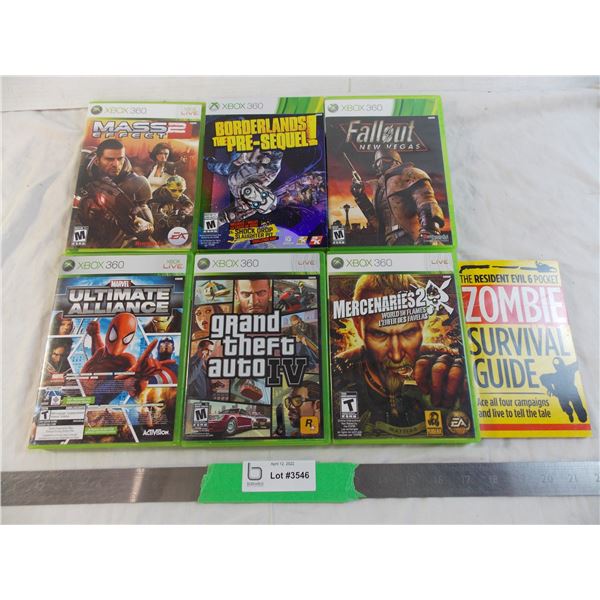 Borderlands Pre-sequel, Fallout, Mercenaries, Mass Effect (all complete except Fallout missing instructions + Marvel game disc missing)
