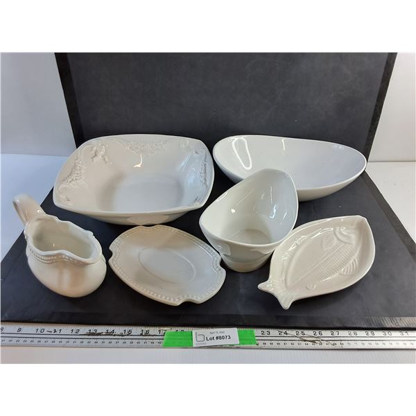 Ceramic Bowls, Gravy Boat, Trays and Candy Dish