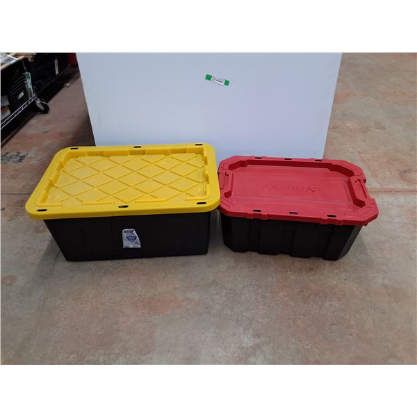 *(2) Plastic Totes with Lids - 31 x 20 x 14" and 26 x 18 x 12"
