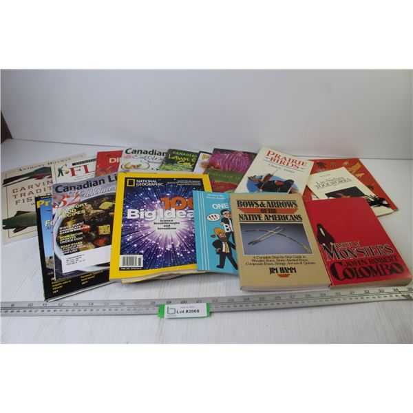 Assortment of Books & Magazines - Carving - Living - Monsters - Birds - Bows & Arrows - Misc.