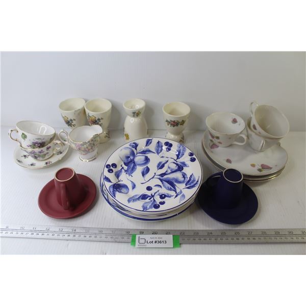 Wooden Spoon Rack - Set of 4 Dessert Plates - Vintage Tea Tins - Plant Pots - (2) Small Wildlife Print Cups & Saucers