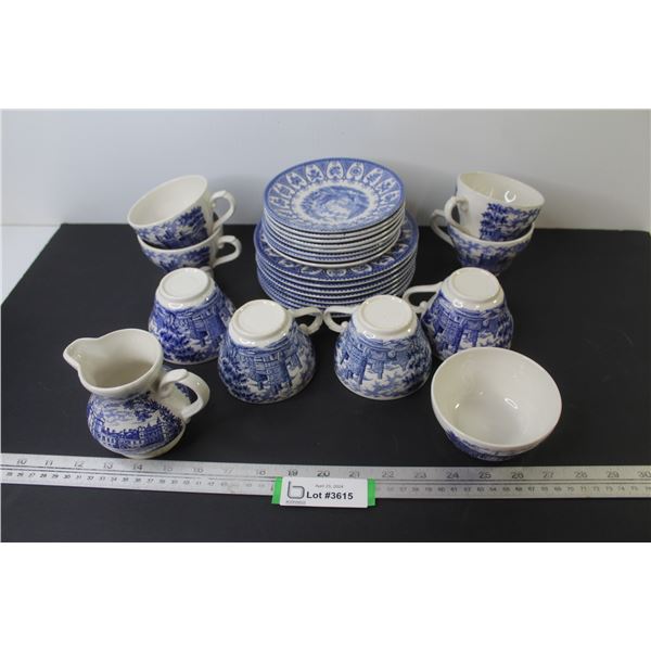 The Queens Silver Jubilee 1977 Dish Set - 8 Place Setting - Plates - Saucers - Cups