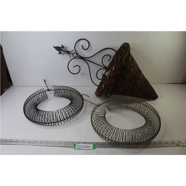 (2) Wire Holders - Metal & Wicker Plant Holder