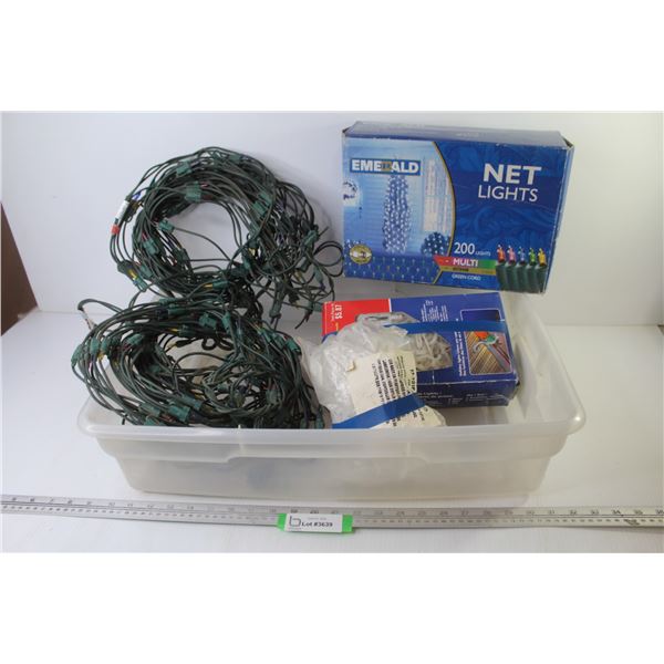 Plastic Container w/Christmas Mini Lights & Light Clips