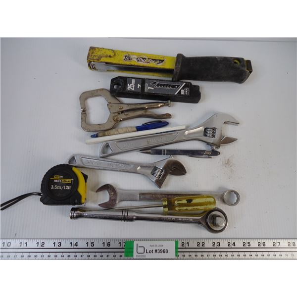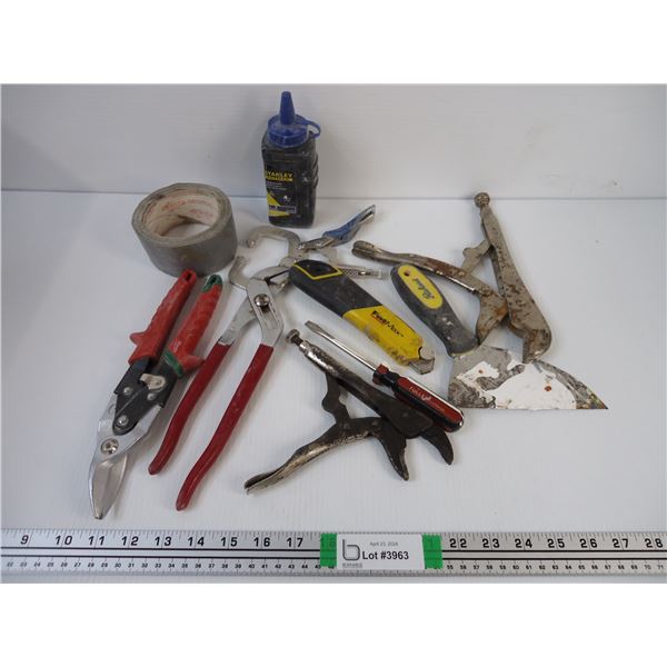(8) Assorted Tools, Roll of Duct Tape, Blue Marking Chalk3963 - (8) Assorted Tools, Roll of Duct Tape, Blue Marking Chalk