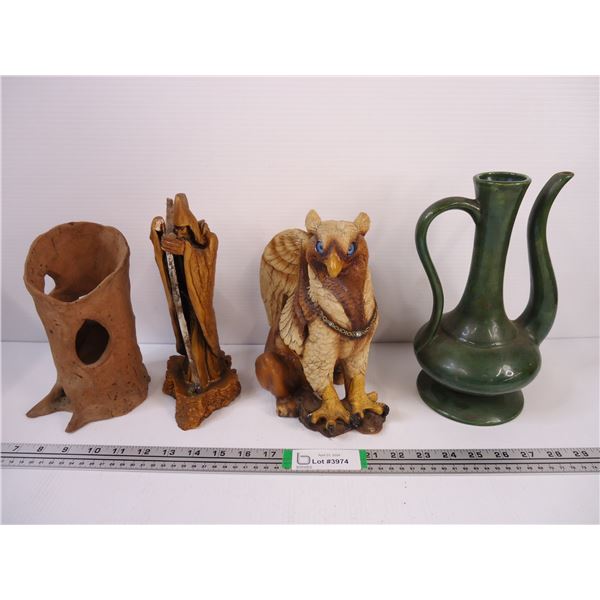 Ceramic Vase, Windstone Edition Fantasy Figure, Wood Sculpture(Chipped)and Terracotta?? Vase