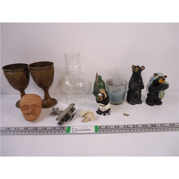 Chimney for Oil Lamp,(2) Brass Metal Cups, Figurines and misc. as pictured
