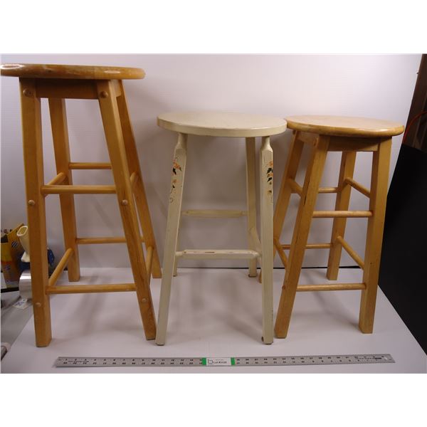 *(3) Wood Stools-(2) are 24' tall, other is 28" and one has been painted